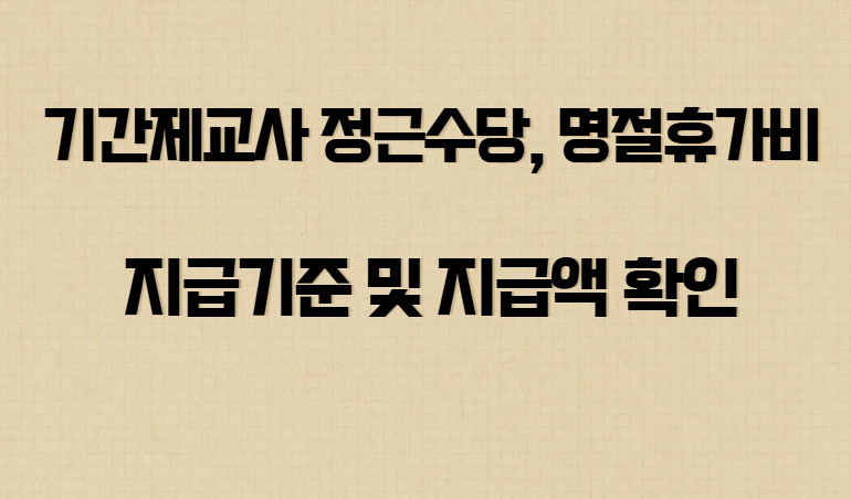 기간제교사는 일반직 교사와 월급체계가 거의 동일하게 적용됩니다. 그중 정근수당과 명절휴가비에 대한 지급기준과 지급액에 대해 알아보겠습니다.
